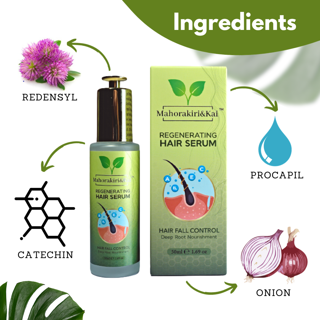 Introducing MahoraKiri&Kai Regenerating Hair Serum - the ultimate solution for healthy-looking hair. Its unique formulation is enriched with high-quality ingredients that deeply nourishes, strengthens and increases volume.