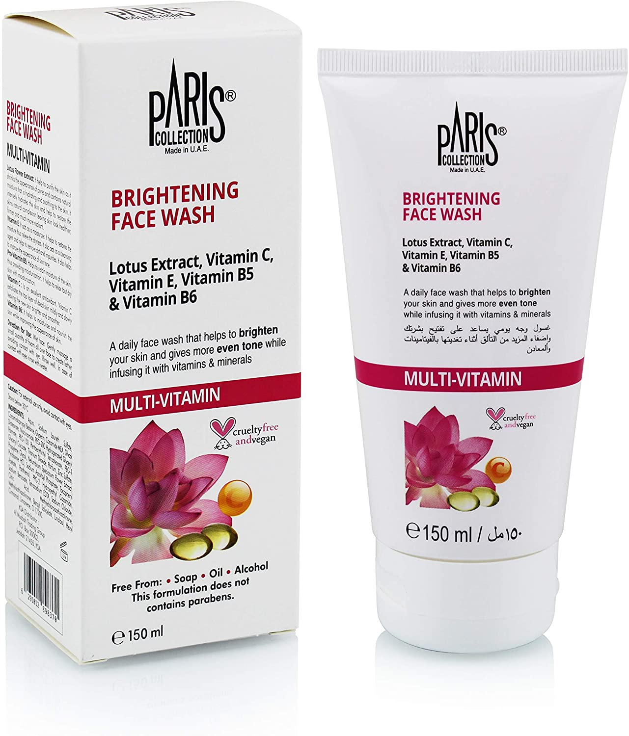 Paris Collection Brightening Face Wash Multi Vitamin is a daily face wash that helps to brighten your skin and gives more even tone while infusing it with vitamins & minerals.