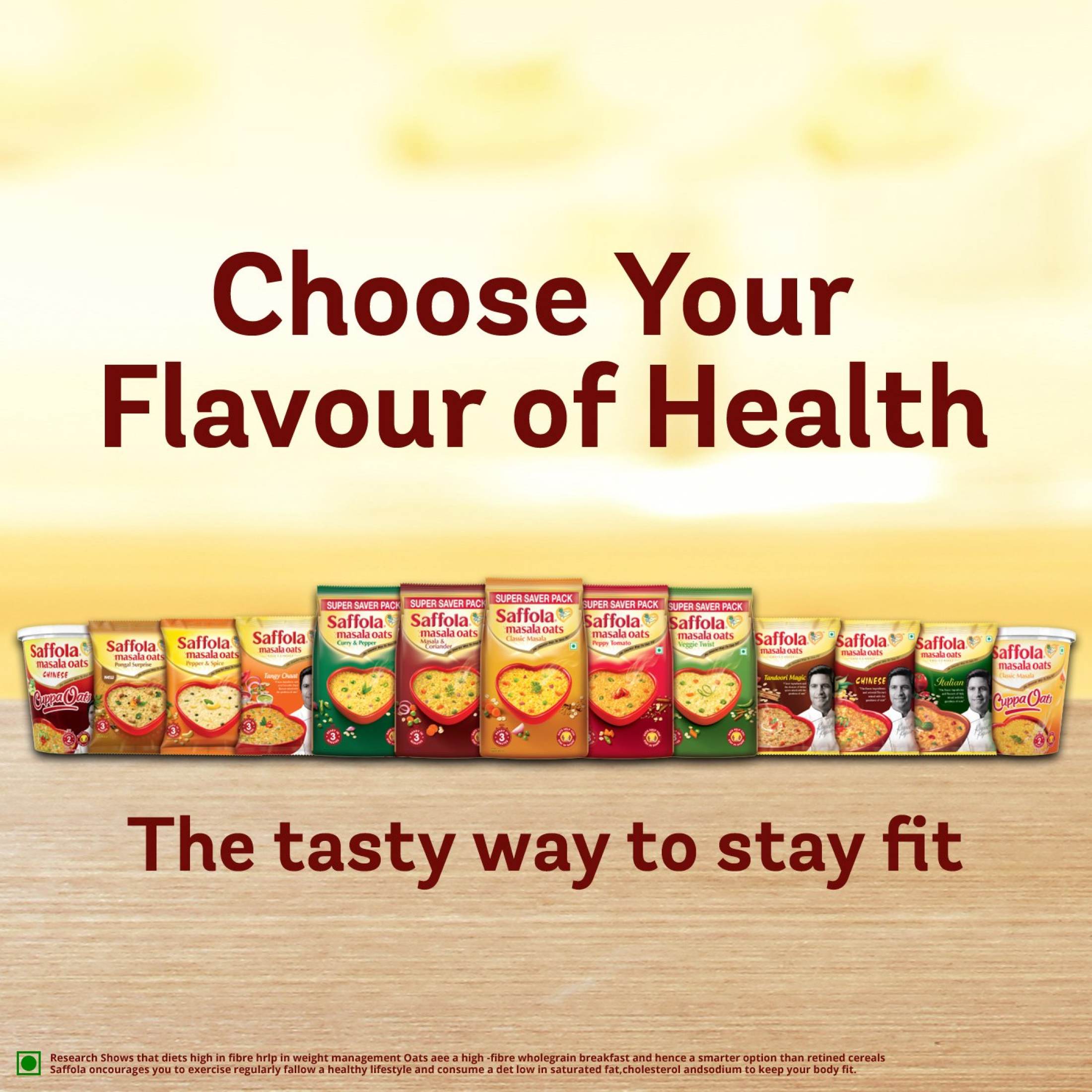 Adakah anda sedang berusaha untuk elak daripada makanan ringan? Anda boleh beralih kepada produk baharu Saffola Masala Oats - Veggie Twist, yang mengandungi khasiat sayuran dan kaya dengan aroma rempah ratus dari India. Padat dengan nutrien penting seperti protein dan serat, Saffola Masala Oats - Veggie Twist Masala adalah pilihan paling bijak untuk anda kekal sihat tanpa perlu memilih makanan yang hambar. Bukan itu sahaja! Penyediaan sarapan hebat ini hanya dalam masa 2 minit sahaja. Tuangkan kandungan pek ke dalam kuali yang berisi air mendidih, dan biarkannya selama beberapa minit. Kacau sekali-sekala dan sepantas kilat, sarapan enak anda sudah pun siap. Jangan tunggu lagi. Tempah pek anda hari ini dan mulakan pemakanan sihat!