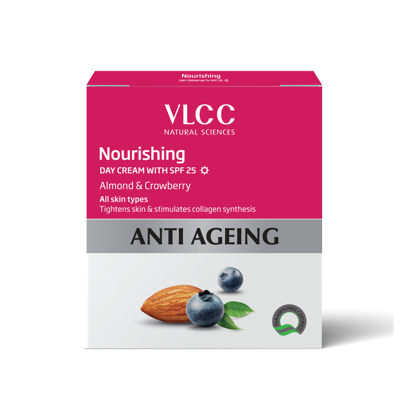 Cleanse your face and apply VLCC Anti-Ageing Vitalift Serum that has Comfrey and Soy concentrates to provide you with firmer and tighter skin while locking the moisture in. Before stepping out into the sun, ensure you apply VLCC Anti-Ageing Nourishing Day Cream with SPF 25 and Almond and Crowberry extracts to tighten and firm the skin while stimulating it’s collagen production. Finally, end your day by gently massaging VLCC Anti-Ageing Hydrating Night Cream. Packed with Almond Oil and Olive extracts, this night cream helps rejuvenate the production of your skin cells without clogging your skin pores.