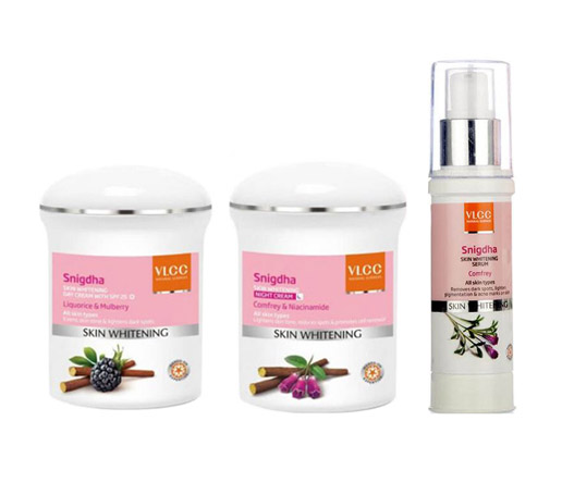 Give your skin the spotless and blemish-free radiance it deserves. Start your day by cleansing your face and then applying VLCC Snigdha’s Whitening Serum to your daily skin-care regime. Developed with years of research, this serum is designed to target problem areas like dark spots, pigmentation & acne marks on the skin. Then, gently massage VLCC Snigdha’s Day Cream with SPF 25, 15 minutes before stepping out and protect your skin from harmful UV rays while preventing recurrence of dark spots, marks and pigmentation. Finally, end your day with our VLCC Snigdha Skin Whitening Night Cream. Crafted with a hydrating yet non-greasy formula, this night cream rejuvenates your skin cells and has anti-aging properties to keep your skin hydrated and radiant.